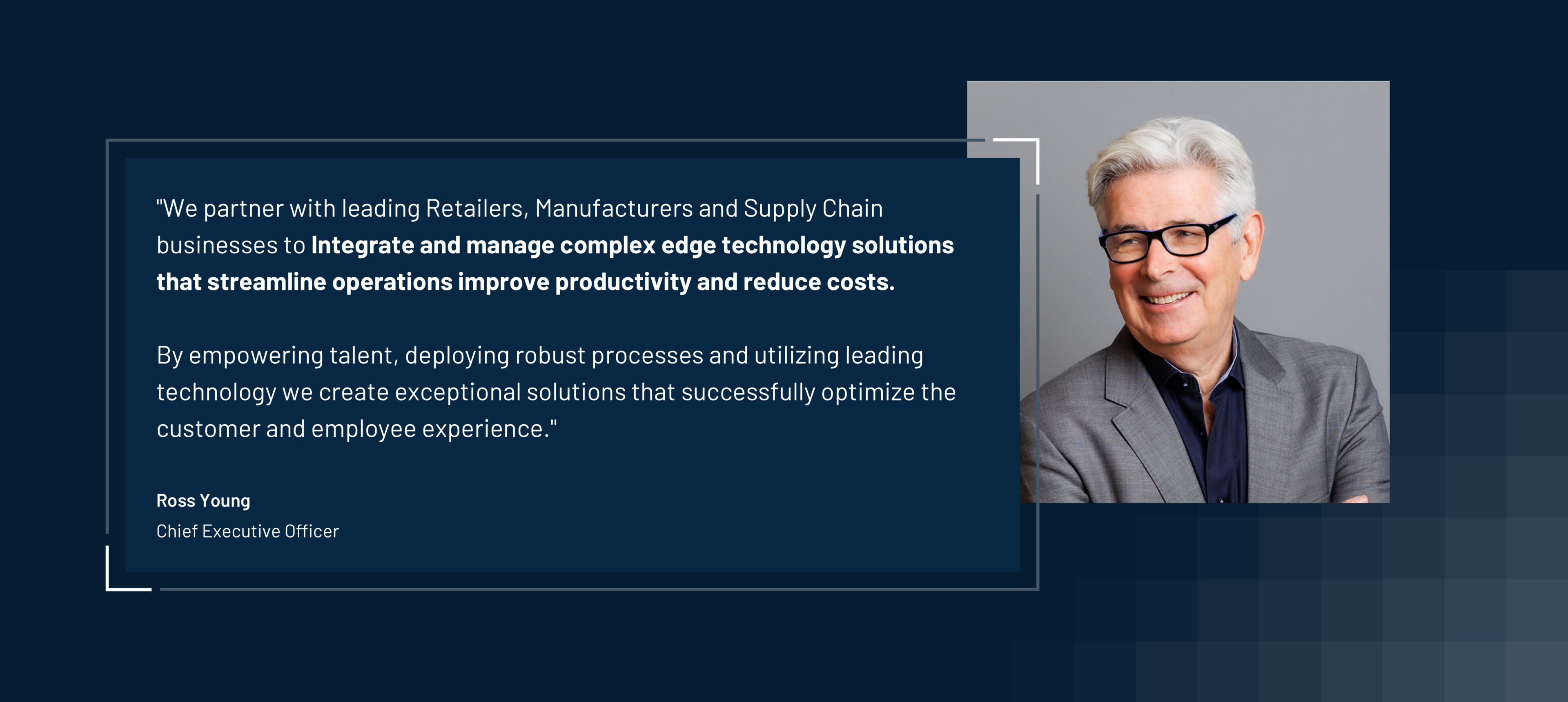 Our mission is to lead the integration of purpose-built, innovative edge technology solutions for manufacturing, supply chain, healthcare, and retail applications. We guide organizations through technology complexity with disciplined processes, integrated solutions, and a commitment to long-term client success.